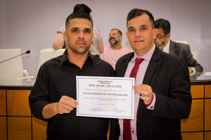 O servidor público, o gari Juliano Mendes de Freitas Martins participou da Sessão onde recebeu uma moção de aplausos pelo trabalho artístico por meio de pinturas em produção de Desenhos Realistas que tem chamado a atenção da sociedade pelas obras. “Destacamos hoje esse funcionário público que tem um dom maravilhoso que Deus deu a ele e que hoje recebe aqui, na Casa de Leis, a nossa singela homenagem pelo lindo trabalho artístico”, disse o presidente da Câmara Edson Márcio de Almeida.